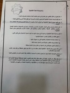 -عدم تثبيت لوحات الدعاية الانتخابية في الحدائق العامة والجزرات الوسطية للشوارع والأرصفة باستخدام مادة الإسمنت.