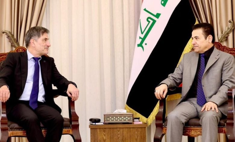 وذكر المكتب الإعلامي لمستشار الأمن القومي، في بيان تلقت “المعالي نيوز” نسخة منه، أن “مستشار الأمن القومي، قاسم الأعرجي، استقبل سفير الاتحاد الأوروبي لدى العراق، كليمينس زيمتنر”، مضيفاً أن “اللقاء، استعرض علاقات التعاون بين العراق ودول الاتحاد الأوروبي، كما جرى بحث التطورات التي تشهدها المنطقة وتداعياتها على السلم الإقليمي والدولي “.
