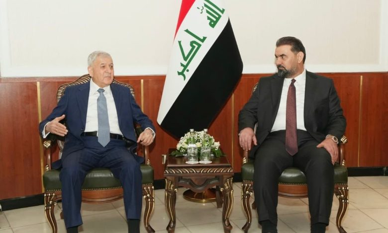 وذكر المكتب الإعلامي لرئيس مجلس النواب، في بيان تلقت “المعالي نيوز” نسخة منه، أن “رئيس مجلس النواب هيبت الحلبوسي، استقبل، رئيس الجمهورية، عبد اللطيف جمال رشيد، في مبنى المجلس، بحضور النائب الثاني، فرهاد الأتروشي”.
