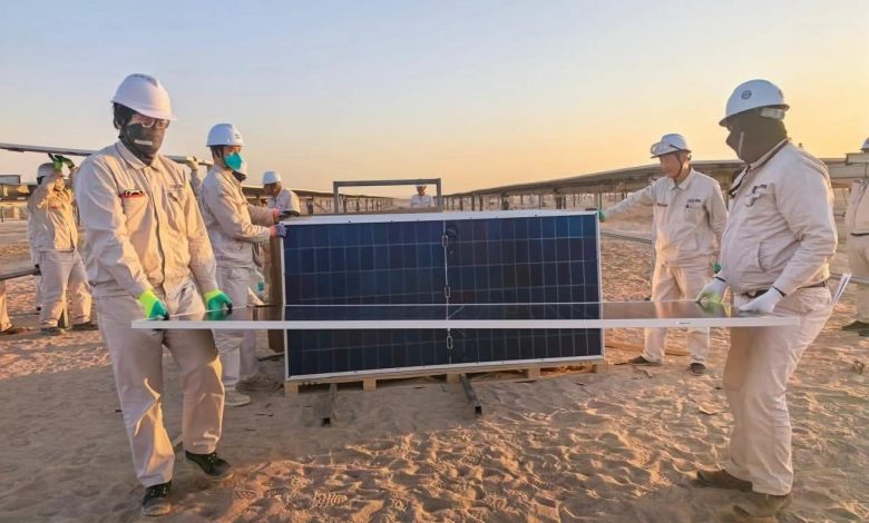 وبيّن،أن “المرحلة الأولى تضم (500,880) لوحاً شمسياً، ضمن مشروع متكامل يصل عدد ألواحه إلى نحو (2) مليون لوح، موزعة على مساحة (4641) دونماً في صحراء الرميلة بحقل أرطاوي، فيما يمتد المشروع الكلي على مساحة تقارب (9000) دونم”.