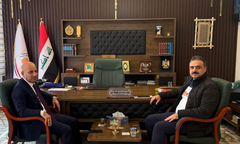وذكر بيان للهيئة تلقت “المعالي نيوز” نسخة منه، أن “رئيس هيئة المنافذ الحدودية الفريق عمر عدنان الوائلي، استقبل في مقر الهيئة، محافظ ديالى عدنان محمد عباس الشمري، في زيارة رسمية تناولت عدداً من الملفات الحيوية المرتبطة بعمل المنافذ الحدودية في المحافظة”.