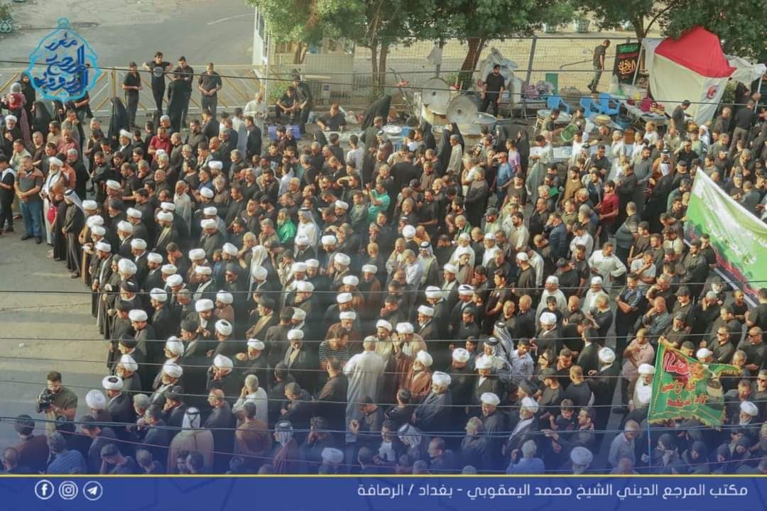 أقام مكتبُ سماحة المرجع الديني الشيخ محمد اليعقوبي في بغداد تشيعاً رمزياً لنعش الإمام الصادق ع .