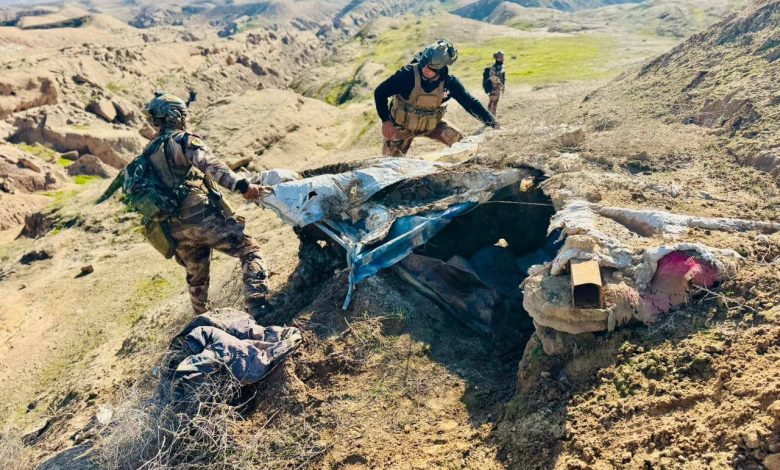 وتابع، “كما نفذت قطعات الجهاز عمليات تفتيش ونصب كمائن في محافظة كركوك قضاء داقوق سلسلة جبال حمرين ضمن إجراءات استباقية وفقا لمعلومات استخبارية دقيقة اسفرت عن العثور على (3) جحور لبقايا عصابات داعش الارهابي تم تخريبها”.