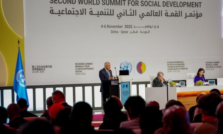 وقال رئيس الجمهورية، خلال كلمة في مؤتمر القمة العالمي الثاني للتنمية الاجتماعية بالعاصمة القطرية الدوحة، وتابعتها “المعالي نيوز”: “اجتماعنا اليوم يمثل فرصةً متجددة لتقييم ما تحقق، واستشراف آفاق جديدة للعمل الجماعي في مواجهة التحديات المتسارعة التي يشهدها عالمنا، من أزمات اقتصادية ومناخية واجتماعية متشابكة، تتطلب مقاربات أكثر عدلاً وإنسانية”.