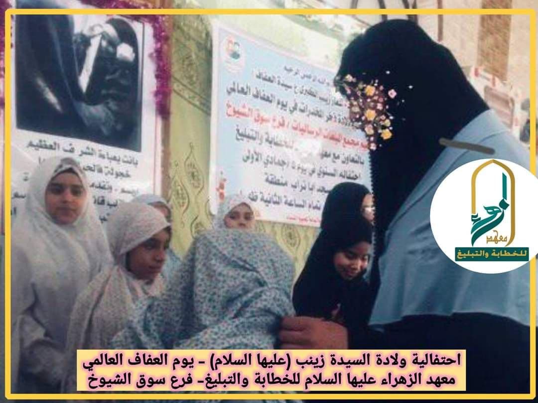 وتابع البيان، “أقام معهد الزهراء (عليها السلام) للخطابة والتبليغ محفلاً، شارك فيه العديد من الطالبات والمبلغات اللائي يتخذن من السيدة زينب أنموذجاً يحتذى به في العفة والعفاف. تضمن العديد من الفقرات والمشاركات”.