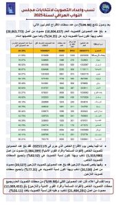 أعلنت المفوضية العليا المستقلة للانتخابات، اليوم الأربعاء، عن نسب وأعداد التصويت لانتخابات مجلس النواب العراقي لسنة (2025).