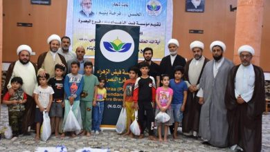 وزعت مؤسسة فيض الزهراء لرعاية الفقراء والايتام في البصرة كسوة العيد لمئات الاطفال والاهالي يثمنون المبادرة تحت شعار ” الامام…