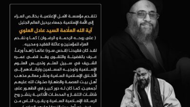 تقدمت إدارة مؤسسة الأمل الإعلامية (قناتي النعيم وبينات الفضائيتين، وإذاعة الأمل من العراق)، السبت، بواجب العزاء بوفاة العالم الجليل آية…