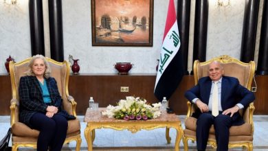 بحث نائب رئيس مجلس الوزراء وزير الخارجيَّة، فؤاد حسين، اليوم الجمعة، مع سفيرة الولايات المُتحدة الأمريكيَّة لدى العراق، آلينا رومانوسكي،…