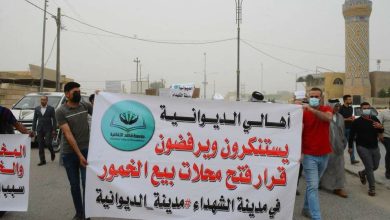 أهالي الديوانية يتظاهرون احتجاجا على افتتاح محل لبيع الخمور